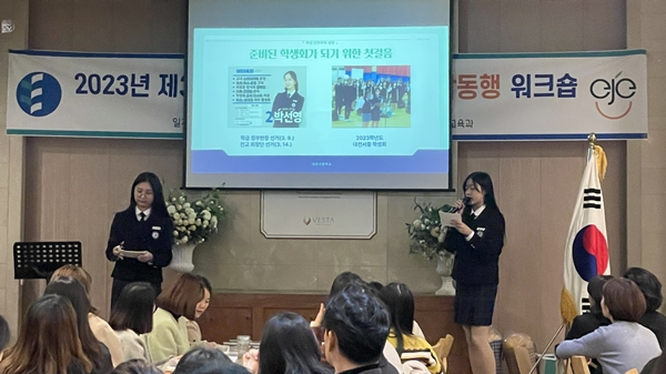 또 지난달 18일 개최된 '2023년 학생자치 및 매니페스토 우수사례 학생 발표 한마당'에서 최우수상을 수상한 대전용운중 함효은, 엄소향 학생(지도교사 이재인)이 ‘우리가 함께 만드는 매일의 소확행 Story’라는 주제로, 대전서중 박선영, 정다인 학생(지도교사 김득범)이 ‘따뜻한 소통으로 한 걸음 한 걸음 나아가는 학생회’라는 주제로 운영사례를 발표했다.