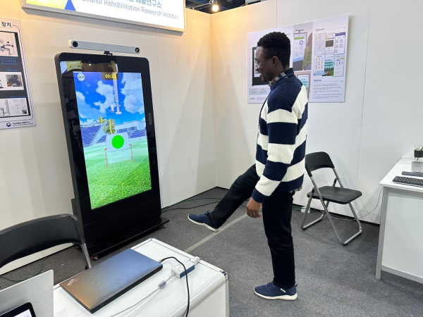 이번에 전시된 기기는 체육관, 병원 등 시설이 없는 곳에서도 증강 현실(AR)을 통해 다양한 운동과 치매 예방 등 신체·인지 활동을 돕는다.