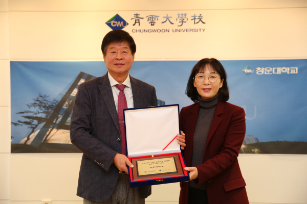 이날 수상은 한국교양기초교육원장을 대신해 정윤 총장이 염은이 교양대학장에게 수여했다.