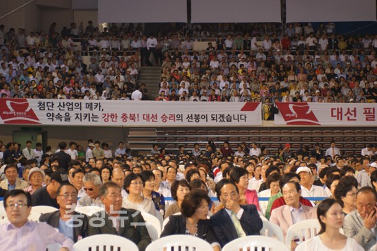 또 그는 “청주 국제공항을 중부권 거점공항으로 육성하겠다”며 “수도권 전철을 오송에서 청주 공항까지 연장하겠다”고 강조하며 충청권 구애에 나섰다.