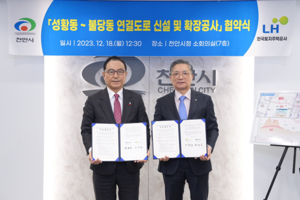 시는 18일 한국토지주택공사와 ‘성황동~불당동 연결도로 신설 및 확장 사업’을 위한 협약을 체결했다.