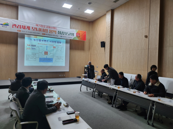 [충청뉴스 권상재 기자] 예산군은 예산해봄센터 주민교육실에서 농특산물 유통·마케팅 활성화 사업 자문위원과 실무추진단 10명이 참석한 가운데 ‘예가정성 공동브랜드 관리체계 구축 모니터링 용역 최종보고회’를 개최했다고 19일 밝혔다.