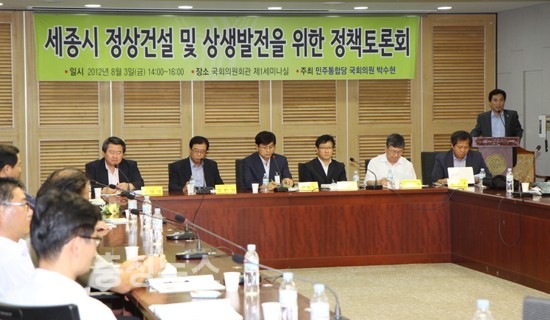 민주통합당 충남도당위원장 박수현 의원(공주시) 주최, ‘세종시 정상건설 및 상생발전을 위한 정책토론회’가 오후 2시 국회의원회관 제1세미나실에서 열렸다.