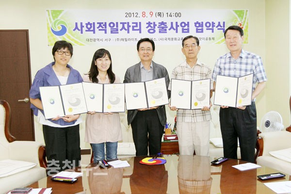 대전시 서구(구청장 박환용)는 지난 9일 취약계층에게 안정적 일자리와 사회서비스를 제공하는 서구 관내 예비사회적기업과 ‘사회적일자리 창출사업 협약식’을 가졌다.