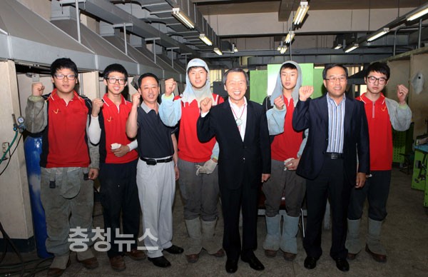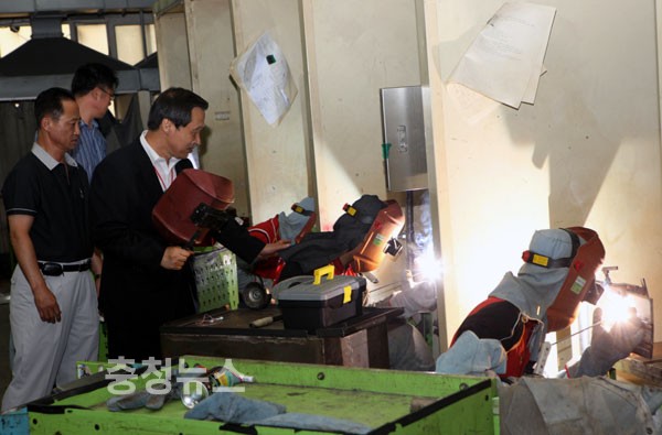 대회에 참가하는 학생들을 격려하기 위해 9일 오전 11시 김종성 교육감이 천안공고를 직접 방문해 기능훈련 중인 학생들을 격려했다.