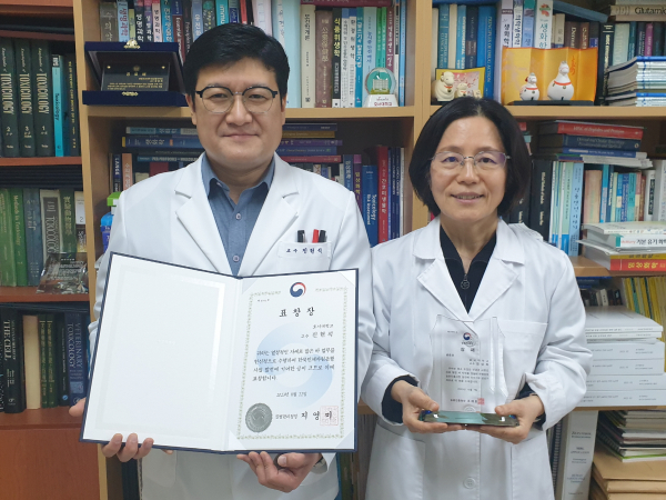 정상희 교수는 ‘농약의 인체 건강 위해성 평가기술 개발 및 국제화’, 진현석 교수는 ‘한국인체자원은행사업 및 보건의료 연구 발전’에 기여한 공로를 인정받았다.