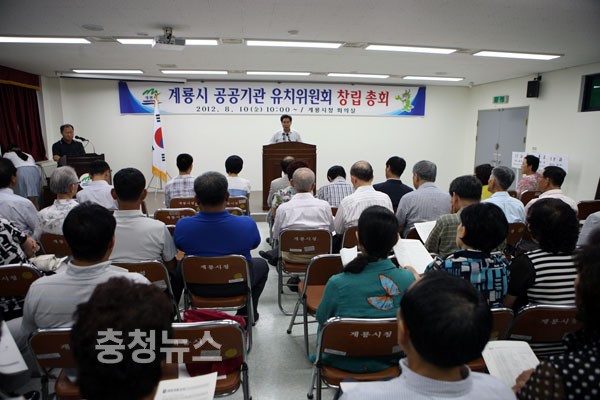 계룡시(시장 이기원)가 공공기관의 적극적인 유치활동과 효과적 운영을 위해 시민 중심의 위원회를 구성하고자 지난 6월에 발기인대회를 개최한데 이어 지난 10일 계룡시청 회의실에서 시민, 사회단체 회원 100여명이 모인가운데 계룡시공공기관유치위원회 창립총회를 개최했다.