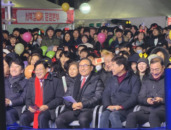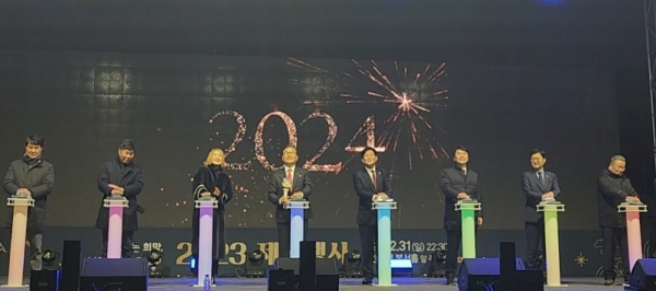 [충청뉴스 박동혁 기자] 한 해를 마무리하고 갑진년 새해를 맞이하기 위한 ‘2023 제야 행사’가 천안시청 봉서홀 앞 주차장에서 31일 열렸다.