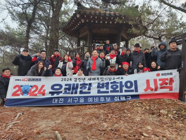 [충청뉴스 김용우 기자] 이택구 국민의힘 대전 서구을 국회의원 예비후보가 갑진년 새해를 맞아 해맞이 등산을 하며 100일 앞으로 다가온 22대 국회의원 선거 승리를 다짐했다.