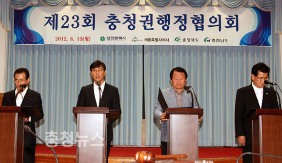 충청권 4개 시도지사로 구성된 충청권 행정협의회는 13일 제 18대 대통령선거 후보들에게 권유할 11개 공약을 합의하고 충청권 공동발전을 위한 결의문을 채택했다.