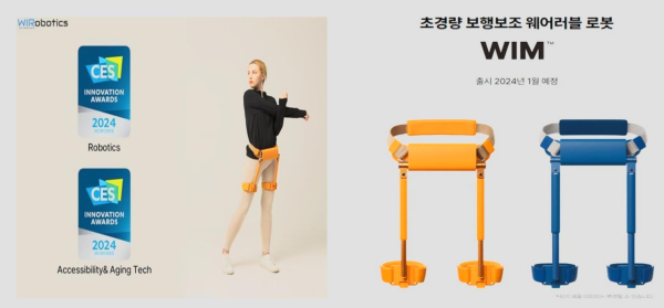 [충청뉴스 박동혁 기자] 한국기술교육대학교는 창업벤처기업 ‘위로보틱스’가 ‘2024 국제전자제품박람회(CES)’에서 초경량 보행보조 웨어러블 로봇 ‘윔(WIM: We Innovate Mobility)’을 공개했다고 12일 밝혔다.
