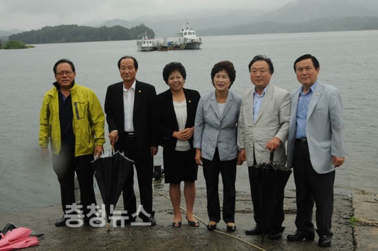 ▲ 이날 대청호 점검에는 박선용 도시복지위원장, 김종성 의장, 이규숙 기획행정위원장, 오관영 운영위원장, 류택호 부의장, 원용석 운영위원회 부위원장이 참석했다.