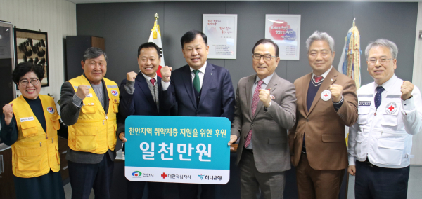 대한적십자사 충남지사는 천안시청에서 하나은행 충청영업그룹으로부터 2024년 적십자 특별회비 천만 원을 전달받았다