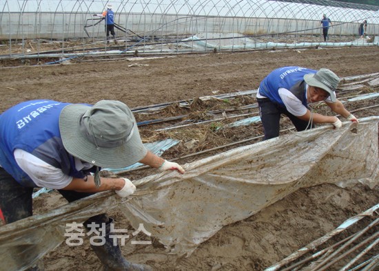 ▲ 충남농협, 폭우피해농가 현장으로 달려가 비닐하우스 및 폐작물 쓰레기 수거 작업 실시
