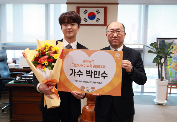 [충청뉴스 권상재 기자] 충남 서천군 출신 트로트 가수 박민수 씨가 충남 고향사랑기부제의 새로운 홍보대사로 발탁됐다고 16일 밝혔다.