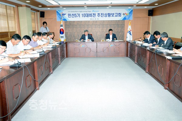 부여군(군수 이용우)은 24일 군청회의실에서 이용우 군수를 비롯한 각 실·과·단·소장 등 20여명이 참석한 가운데, 민선5기 군정 10대비전에 대한 전반기 평가와 함께 후반기 군민이 행복한 군정운영을 위한 민선5기 군정 10대비전 추진상황 보고회를 개최했다.