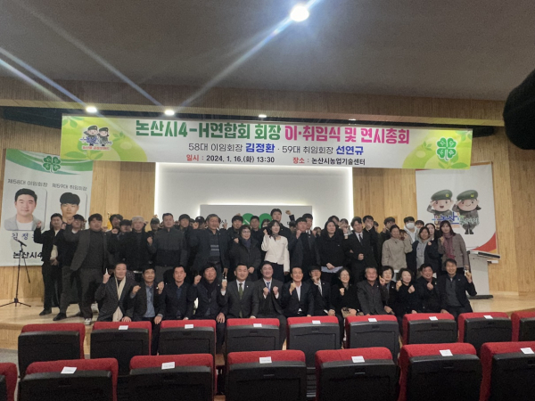 [충청뉴스 논산 = 조홍기 기자] 논산시(시장 백성현)는 4-H연합회가 지난 1월 16일 논산시농업기술센터에서 회원과 내빈 80여 명이 참석한 가운데 제59대 회장 선연규 취임식과 연시총회를 성황리에 마쳤다고 밝혔다.