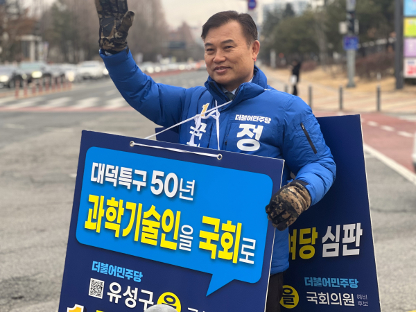 황정아 연구원이 16일 한 라디오에 출연해 지역구 출마 의사를 내비치자, 정 예비후보는 과학기술인의 동반 여의도 입성을 위한 '윈윈 전략'을 제시한 셈이다. 민주당은 최근 유성구을 선거구를 전략선거구로 지정했다.