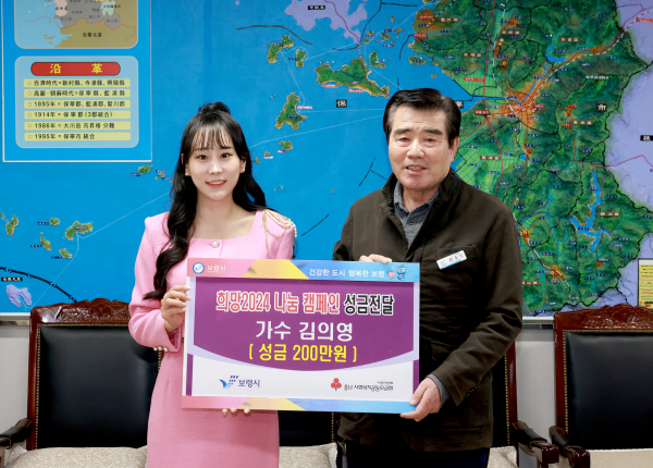 [충청뉴스 보령 = 조홍기 기자] 트로트 가수 김의영이 충남 보령시에 이웃돕기 성금 200만원을 기탁했다.