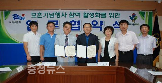청소년 보훈기념행사와 나라사랑 앞섬이 봉사프로그램 참여 활성화를 위한 업무협약식이 24일 신영교 대전지방보훈청장과 김명수 대전광역시청소년활동진흥센터 소장 등 관계관이 참석한 가운데 실시됐다.