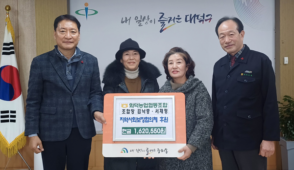 [충청뉴스 박영환 기자] 대전 대덕구(구청장 최충규) 중리동은 지난 24일 김낙중 회덕농협 조합장으로부터 어려운 이웃을 돕기 위한 성금 162만 원을 전달받았다고 밝혔다.