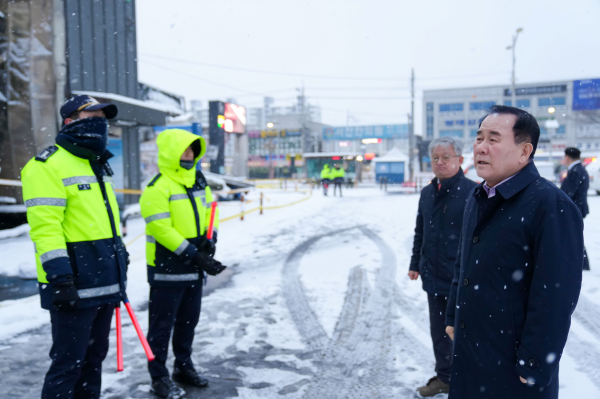 서천 특화시장 화재 현장을 방문한 김지철 교육감