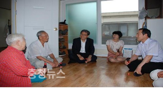 ▲ 오덕성 충남대학교 부총장(가운데)이 재가복지대상자 전조한(좌측 두 번째)씨를 찾아 특별한 보훈공감을 실천했다.