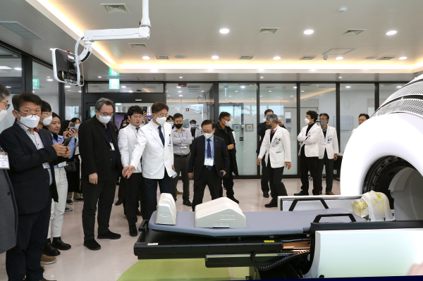 'ZAP-X 도입기념 심포지엄'에 앞서 ZAP-X 방사선수술센터를 둘러보는 참석자들/단국대병원 제공