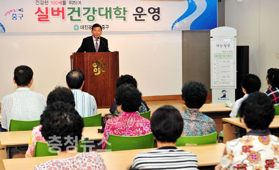 대전광역시 중구(구청장 박용갑)는 3일 중구보건지소 보건교육실에서 '실버건강대학' 개강식과 운동 건강강좌를 열었다.