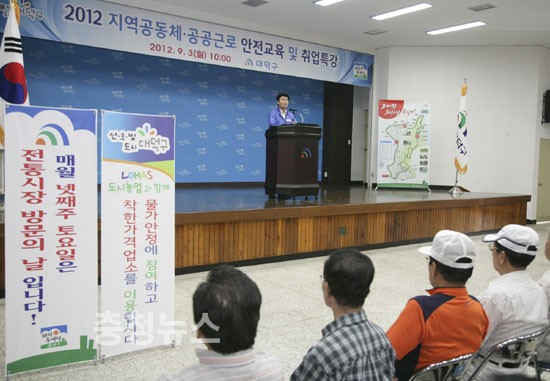 대전광역시 대덕구(구청장 정용기)는 3일 구청 대강당에서 지역공동체 및 공공근로 참여자 200명을 대상으로 안전교육 및 취업특강을 실시했다.