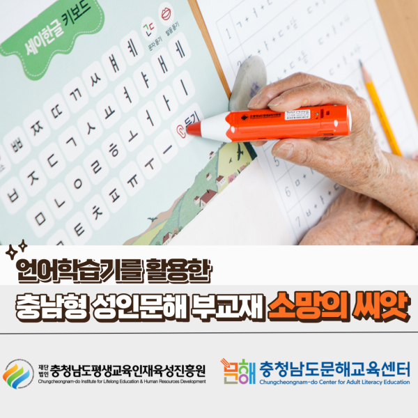 [충청뉴스 권상재 기자] (재)충남평생교육인재육성진흥원(이하 진흥원)은 2022년 전국 최초로‘언어학습기(세이펜)를 활용한 충남형 성인문해 부교재 1편“소망의 씨앗”’개발 완료 후, 2023년에 시범보급을 성황리에 마쳤다고 전했다.