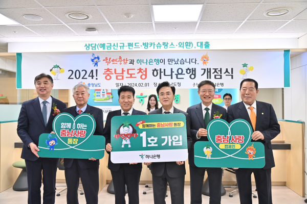 아울러 이날 행사에선 김 지사가 하나은행의 ‘충남사랑통장’에 1호로 가입해 도와 하나은행이 함께하는 나눔·기부 활동에 힘을 실었다.