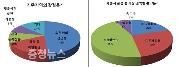 지역별로는 예정지역주민은 교원, 시설 등 우수학교 건립( 63%)을 중요시했다. 조치원읍 주민은 원도심 활성화(48%)에 비중을 뒀고, 연서면 등 기타 지역은 농촌지역의 경쟁력 강화(39%)를 많이 요구했다.
