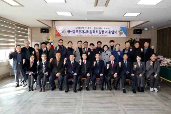 금산읍행정복지센터 대회의실에서 열린 이취임식에는 박범인 금산군수, 김기윤 금산군의회 의장, 변문환 이임 위원장을 비롯한 군의원, 지역 단체장, 주민자치 위원 등 100여 명이 함께했다.