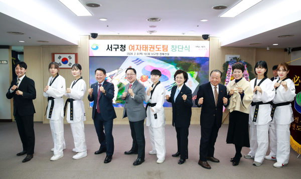 [충청뉴스 박영환 기자] 대전 서구(구청장 서철모)는 8일 구청 장태산실에서 여자태권도팀 창단식을 열었다.