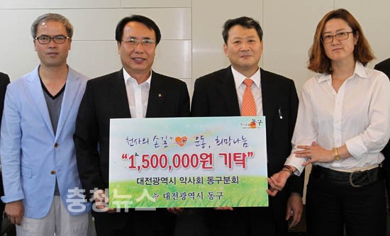 대전광역시 약사회 동구분회(회장 이기석)는 11일 한현택 동구청장을 찾아 복지소외계층을 위해 써달라며 ‘천사의 손길 행복 플러스’에 성금 150만원을 기탁했다.
