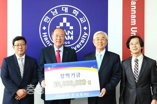 한남대는 (주)삼영기계 한금태 회장이 평소 선행과 봉사활동을 펼쳐온 학생 10명에게 1천만 원의 장학금을 전달했다고 12일 밝혔다.