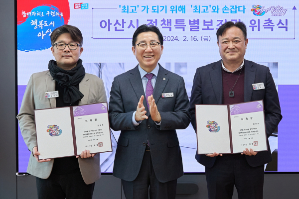[충청뉴스 박동혁 기자] 충남 아산시는 도시개발 분야 정책특별보좌관 2명을 추가 위촉했다고 19일 밝혔다.