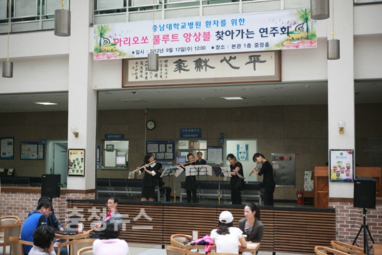 충남대학교병원(원장 송시헌)은 9월12일(수) 낮 12시에 본관 1층 중정홀에서 Arioso Flute Ensemble를 초청해 환자를 위한 연주회를 개최했다.