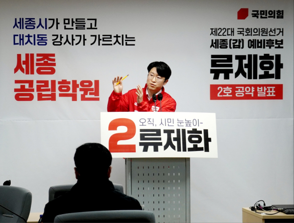 [충청뉴스 최형순 기자] 국민의힘 류제화 세종갑 국회의원 예비후보가 22일 세종시청 브리핑실에서 2호 공약으로 ‘세종공립학원’ 설립을 발표했다.
