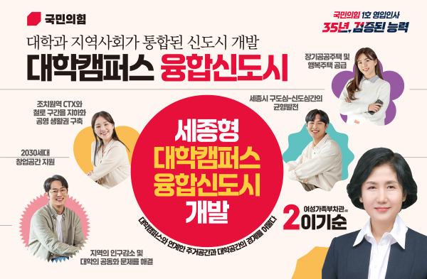 [충청뉴스 최형순 기자] 국민의힘 비대위 1호 영입인사인 이기순 예비후보(전 여성가족부 차관)는 25일 2차 공약인 ‘세종형 대학캠퍼스 융합신도시 개발’ 계획을 밝혔다.