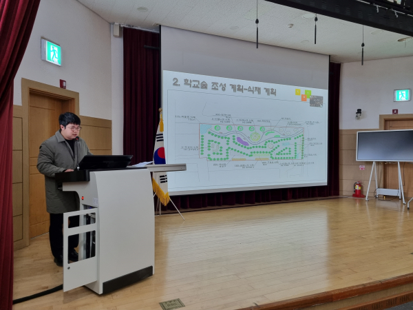 이날 특강을 진행한 천리포수목원 최창호 부원장은 “학교숲 조성을 통하여 우리 아이들이 자연과 생명의 소중함을 느껴야한다”며 “생물다양성 이해를 바탕으로 사람과 자연이 하나임을 일찍부터 깨우쳐야 한다”고 말했다.