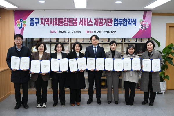 [충청뉴스 박영환 기자] 대전 중구(구청장 권한대행 김영빈)는 27일 지역사회통합돌봄사업 본격 추진을 위해 서비스 제공기관과 업무협약을 체결했다고 밝혔다.