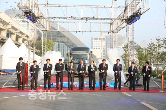 세종시와 KTX오송역을 연결하는 광역 BRT(간선급행버스체계)도로가 오늘 첫 운행에 들어갔다.