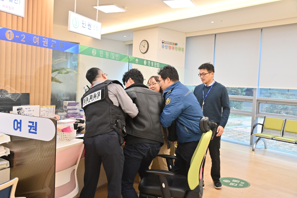 신동헌 자치안전실장은 “최근 빈번히 발생하고 있는 특이 민원에 신속하게 대응해 담당 공무원과 방문 민원인이 보호받을 수 있도록 할 것”이라며 “앞으로도 안전한 민원실 환경 조성에 앞장서고 비상 상황에 대비한 체계적인 대응체계를 구축·운영할 것”이라고 말했다.