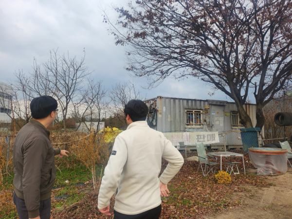 구청 담당 공무원이 농번기를 앞두고 개발제한구역 내 불법행위 특별단속을 실시하고 있다.