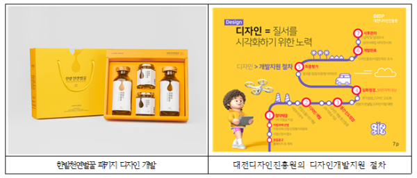 또 ‘중소기업·소상공인 디자인애로해결지원 사업’을 통해 디자인 사각지대에 놓여있는 영세상인의 비즈니스 경쟁력 강화를 이뤄냈으며 지난해 대전 신세계백화점 아트&사이언스 대전홍보관(7층)에서 디자인지원사업 성과전시회를 개최해 ‘강소기업성장디자인지원사업’의 디자인개발 결과물 및 과제 수행 기업 역량을 홍보하는 자리를 마련했다.