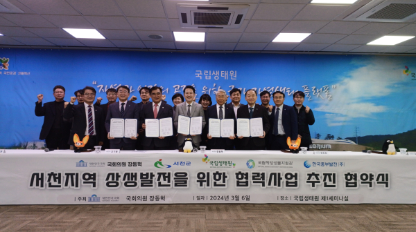 이날 협약식에는 김기웅 서천군수을 비롯해 장동혁 국회의원, 조도순 국립생태원장, 최완현 국립해양생물자원관장, 김호빈 한국중부발전사장 등 기관별 관계자들이 참석해 뜻을 모았다.