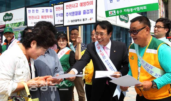 21일 용전동 복합터미널 입구에서 ▲ 대전 동구, 추석맞이 안전사고 예방 캠페인 대전 동구(구청장 한현택)는 21일 용전동 복합터미널 입구에서 직원 및 자원봉사협의회, 자율방재단 회원 등 100여명이 모여 고향길 교통사고 예방 등 추석맞이 안전사고 예방 캠페인을 실시했다. 저작권자 © 충청뉴스 무단전재 및 재배포 금지 문요나 기자 다른기사 보기 기사가 마음에 드셨나요? 충청뉴스 좋은 기사 후원하기 1,000원 3,000원 5,000원 10,000원 30,000원 50,000원 직접입력 비회원 약관동의하기 ※ 소중한 후원금은 더 좋은 기사를 만드는데 쓰겠습니다.