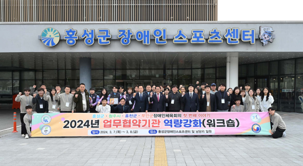 [충청뉴스 권상재 기자] 홍성군은 장애인체육 발전을 위해 청주시, 홍천군, 부안군과 함께 장애인체육 발전을 위한 업무협약(MOU)을 맺고 장애인들의 건강 증진과 사회 참여 확대로 ‘따뜻한 동행’‘행복한 홍성’구현에 힘을 내고 있다.